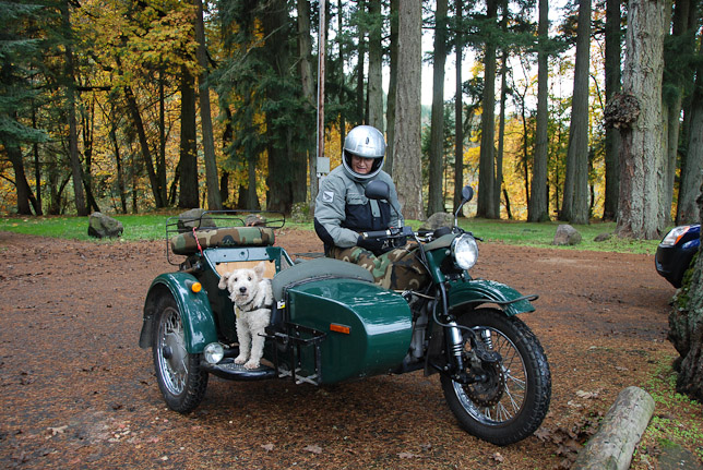 In the lot, we met this interesting pairon a Soviet military motorcycle!