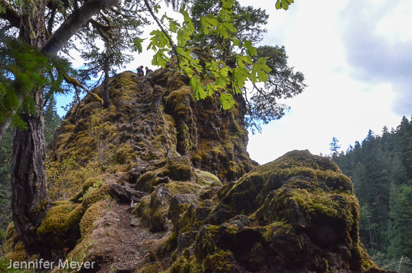 When we came to this steep rock cliff jutting over the Clackamas River, Kathy and Hannah scrambled up like a couple of squirrels.