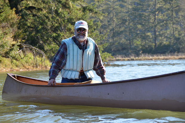 Larry had to maneuver his canoe by himself.