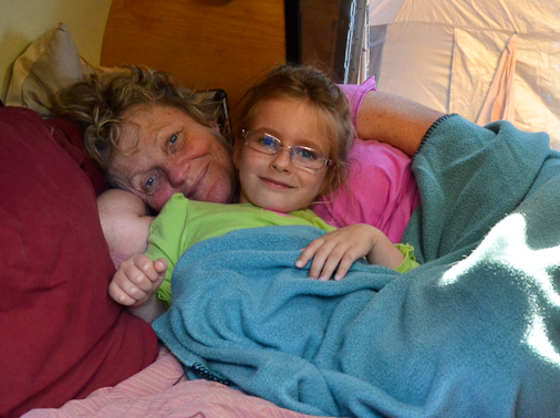 Maddie joins Kate for an afternoon snuggle in the teardrop.