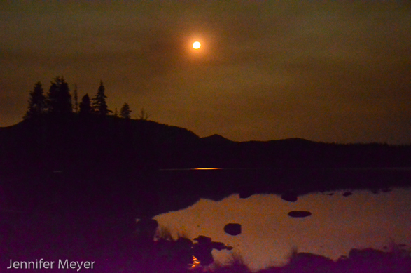When I woke in the night, the sky was filled with smoke from the forest fire, turning the moon orange.